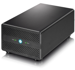 4台までのハードディスクドライブまたはSSDを搭載可能なThunderbolt 2 対応ハードディスクケース。WindowsやMac OS Xで提供される、ソフトウェアRAIDで利用可能。デイジーチェーンに対応した2つのThundeboltポートによって、他のThunderbolt機器も接続可能。 >>>詳細