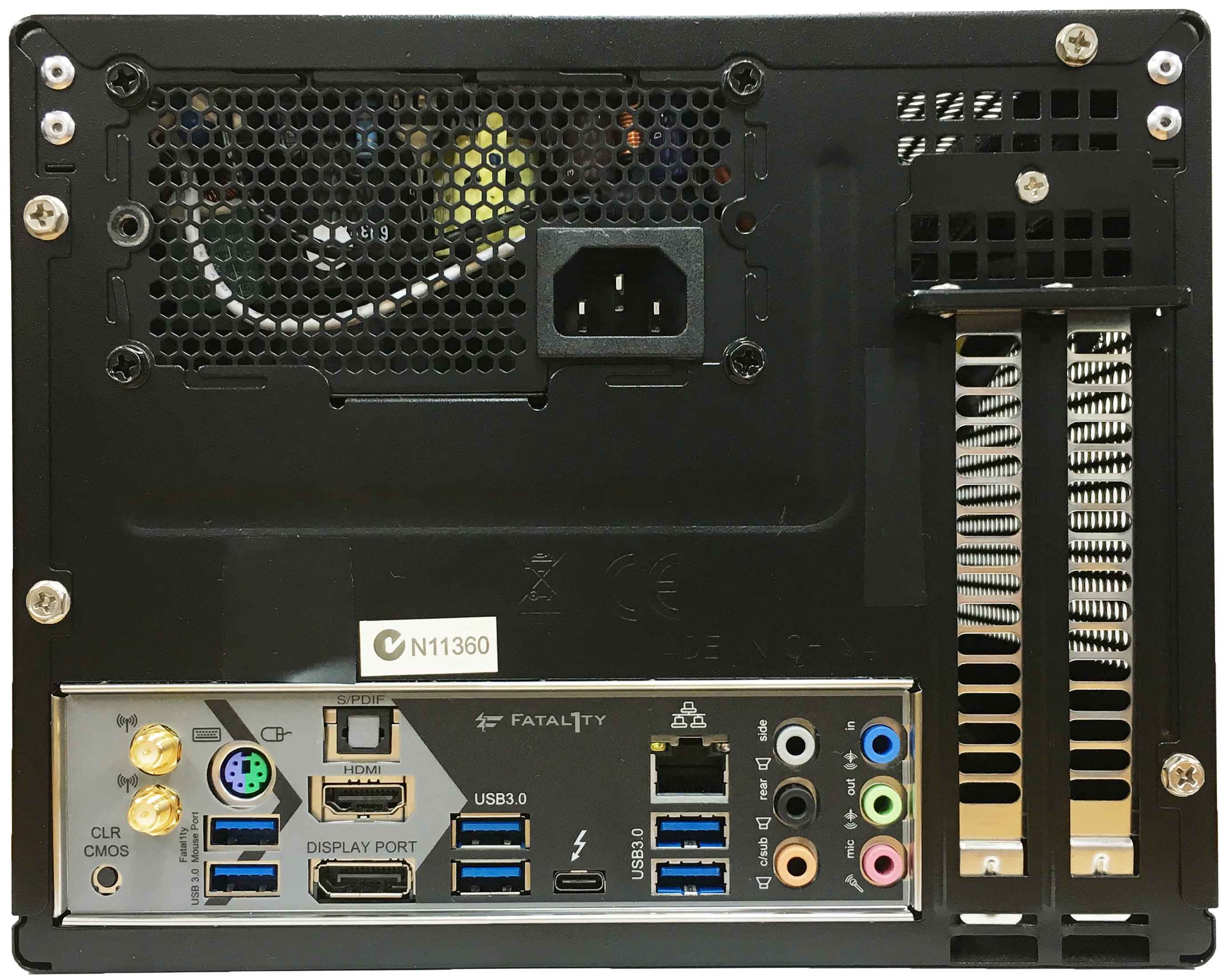 本製品はZ370チップセットを持ち、ミドルタワーの半分のサイズ(高さ18センチ以下)に縮めた小型PCです。