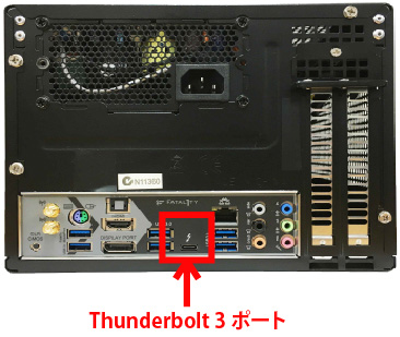 リア Thunderbolt 3 ×1 (USB 3.1 Gen2 および USB-C ディスプレイと互換性あり) USB3.1 Gen1 ×6 Gigabit Ethernet ×1 HDMI ×1、DisplayPort 1.2 ×1、PS/2 ×1 アンテナポート ×2、オーディオジャック |