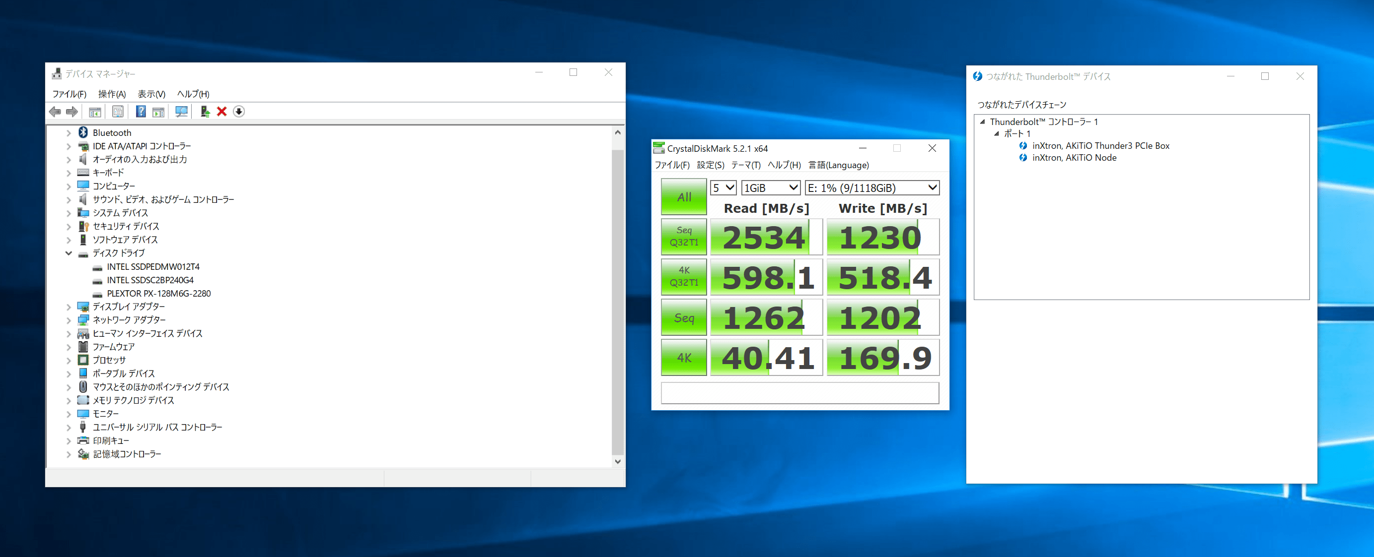 こちらはAKiTiO Thunder3 PCIe BoxにIntelのSSD SSDPEDMW012T4X1を挿してベンチマークを取った結果です。