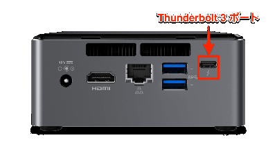 インターフェイス | USB3.1 Gen2 ×4(フロント2、リア2) Thuderbolt 3 ×1(DisplayPort 1.2、USB 3.1 Gen 2 対応) Gigabit Ethernet ×1 HDMI 2.0a ×1(4K@60Hz対応) UHS-I対応 SDXC MicroSDカードスロット ×1 |