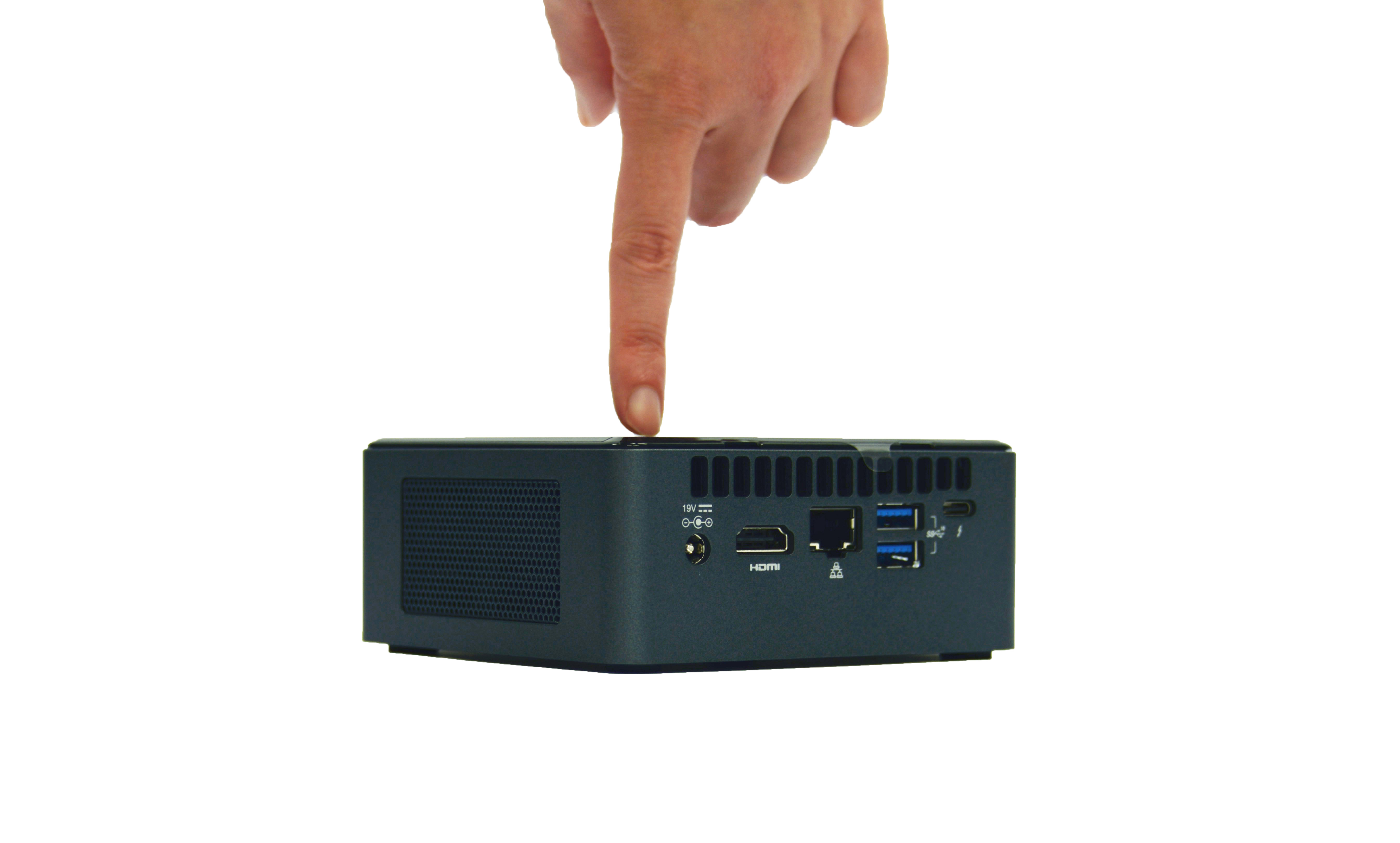 縦横11cm、高さ5cm、重さ約700gのコンパクトサイズ、従来のデスクトップPCのスペースを廃して省スペースを実現できます。